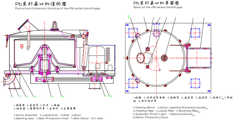PB系列離心機(ji)是根據國家藥(yao)品生産 GMP 規範之(zhī)要求,設計的一(yi)種密閉操作、間(jiān)歇工作式離心(xin)機。大翻蓋結💁構(gòu)設計,機蓋配有(you)機械平衡裝置(zhì),開啓蓋安全省(shěng)力,密閉操🈲作。物(wu)料從機蓋上加(jiā)料管加入,經轉(zhuǎn)鼓高速回轉進(jin)行分離,對物✌️料(liào)進行洗滌,分離(li)結束後,開蓋由(you)人工卸料。